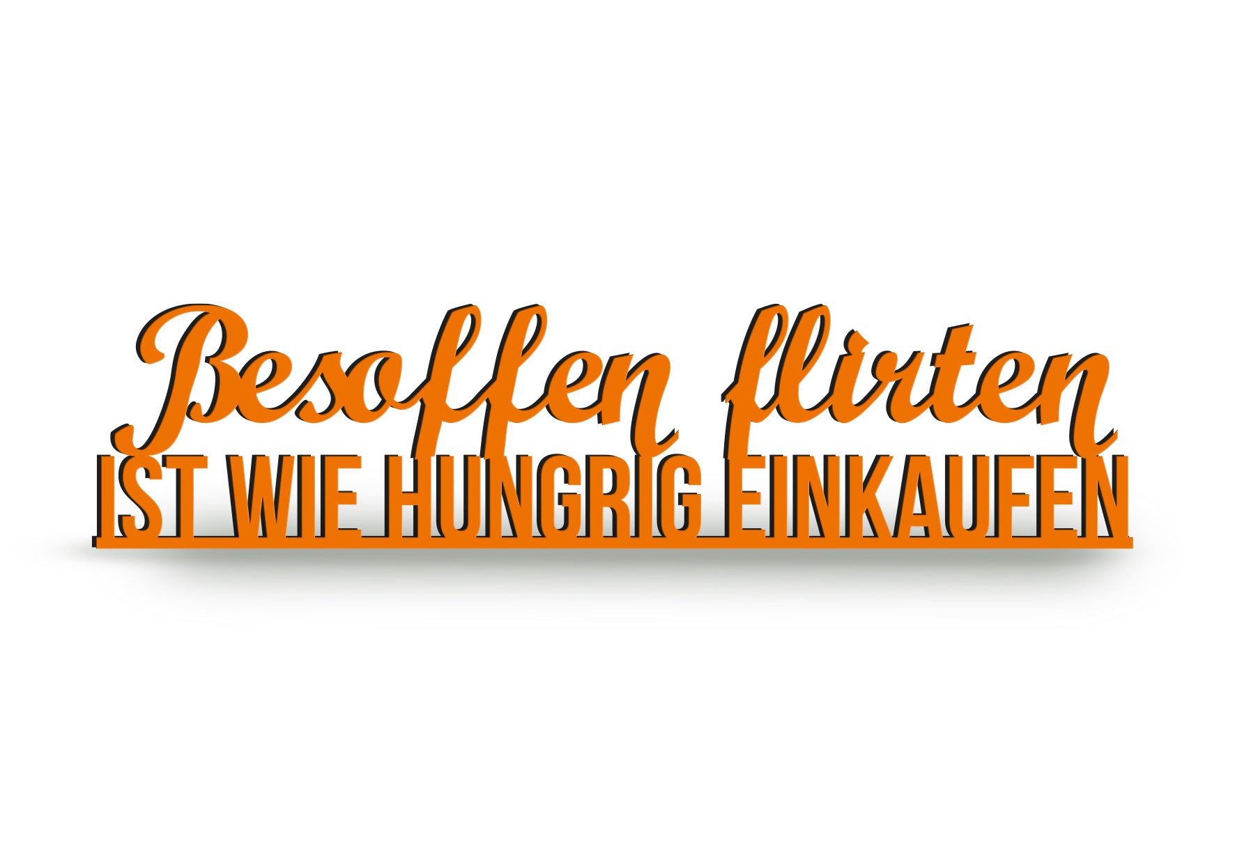 Unser dreidimensionales Textobjekt BESOFFEN FLIRTEN IST WIE HUNGRIG EINKAUFEN - bewahrt uns eine sehr wichtige Illusion: es ist ganz bestimmt die große Liebe ;)