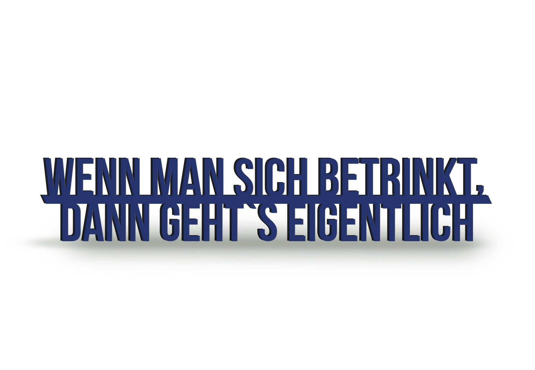 Unser dreidimensionales Textobjekt WENN MAN SICH BETRINKT, DANN GEHT ES EIGENTLICH aus Holzwerkstoff soll Sie nicht zum trinken animieren - aber manchmal hilft es vielleicht trotzdem weiter!